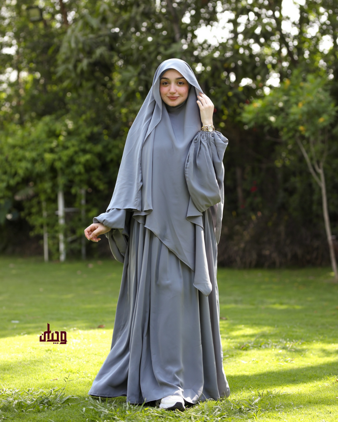 الوصف: تصميم أنيق وعملي مكوّن من خمار إندونيسي واسع وناعم مع فستان فضفاض يناسب معظم الأجسام. إطلالة متكاملة تجمع بين الاحتشام والراحة، وتناسب يومك العادي أو مناسباتك الخاصة.