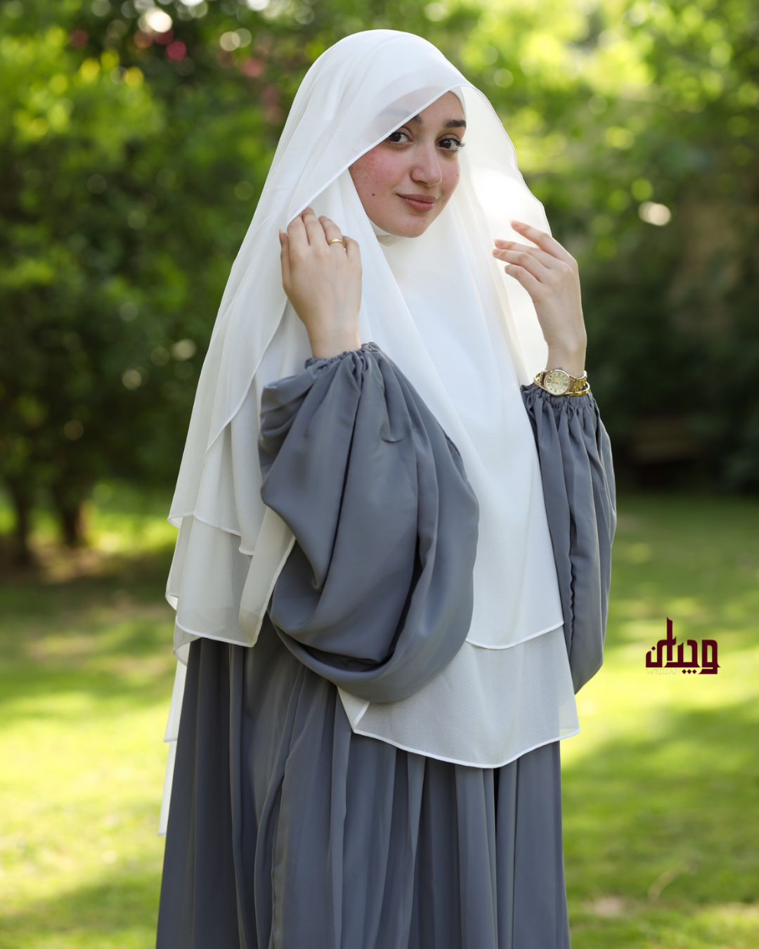 الوصف: خمار واسع بقصة إندونيسية مدورة تمنحك إطلالة أنيقة وفضفاضة. صُمم بخامة شيفون ناعمة جدًا، خفيف على الرأس . مثالي لكل يوم ويكمل أناقتك المحتشمة.